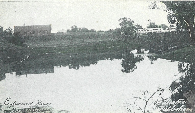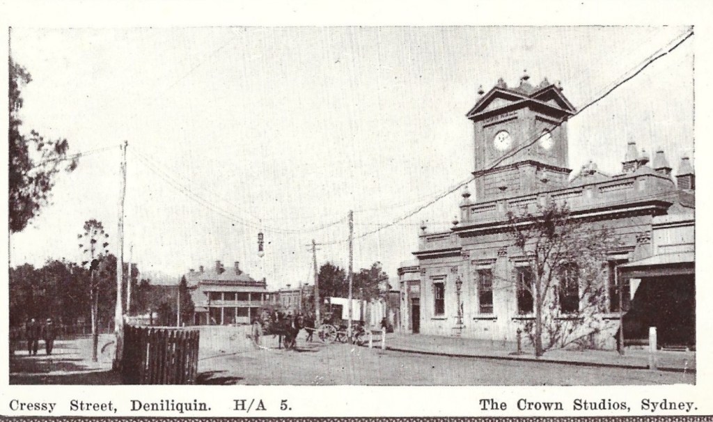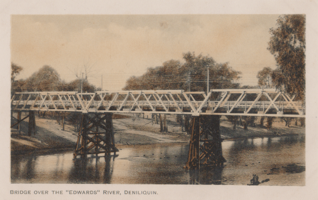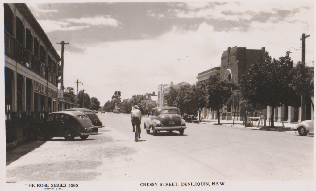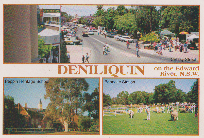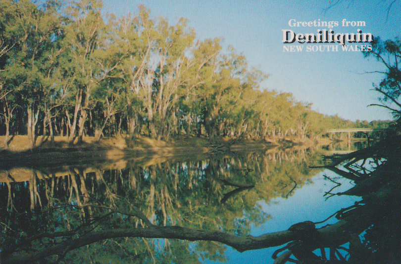 The above postcard is amusing because it says “Deniliquin on the Edward River, N.S.W on the front and Deniliquin on the Edward River, Victoria on the back, it is actually a common mistake because Deniliquin has the Victorian phone code, plays in Victorian Football competitions and gets Victorian TV.